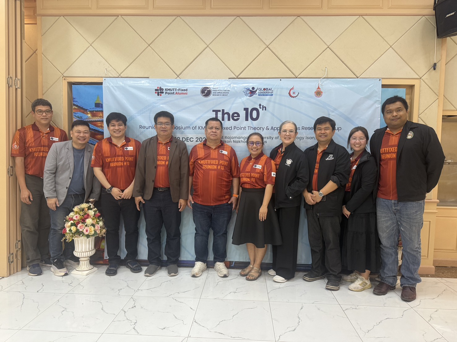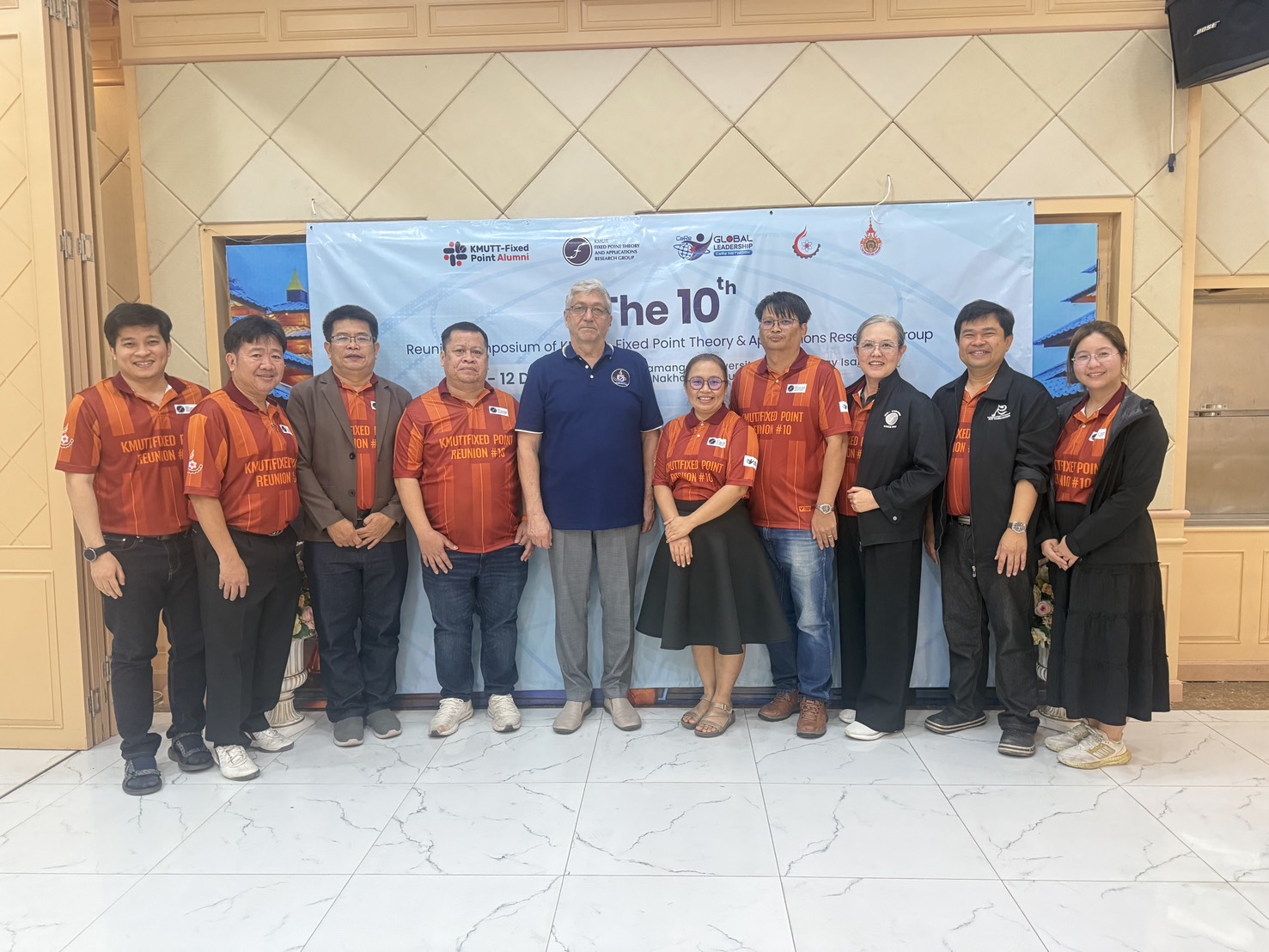 On December 11–12, 2025, both current students and alumni of the Fixed Point Lab participated in the 10th Reunion Symposium of the KMUTT–Fixed Point Theory & Applications Research Group. The event was hosted by Rajamangala University of Technology Isan, Sakon Nakhon Campus, and held at Chokdee Place Hotel, Sakon Nakhon. The symposium began in the morning with inspiring keynote lectures delivered by Prof. Dr. Vasile Berinde (North University Center at Baia Mare, Technical University of Cluj-Napoca) and Prof. Dr. Poom Kumam, highlighting recent advances and perspectives in fixed point theory and its applications.