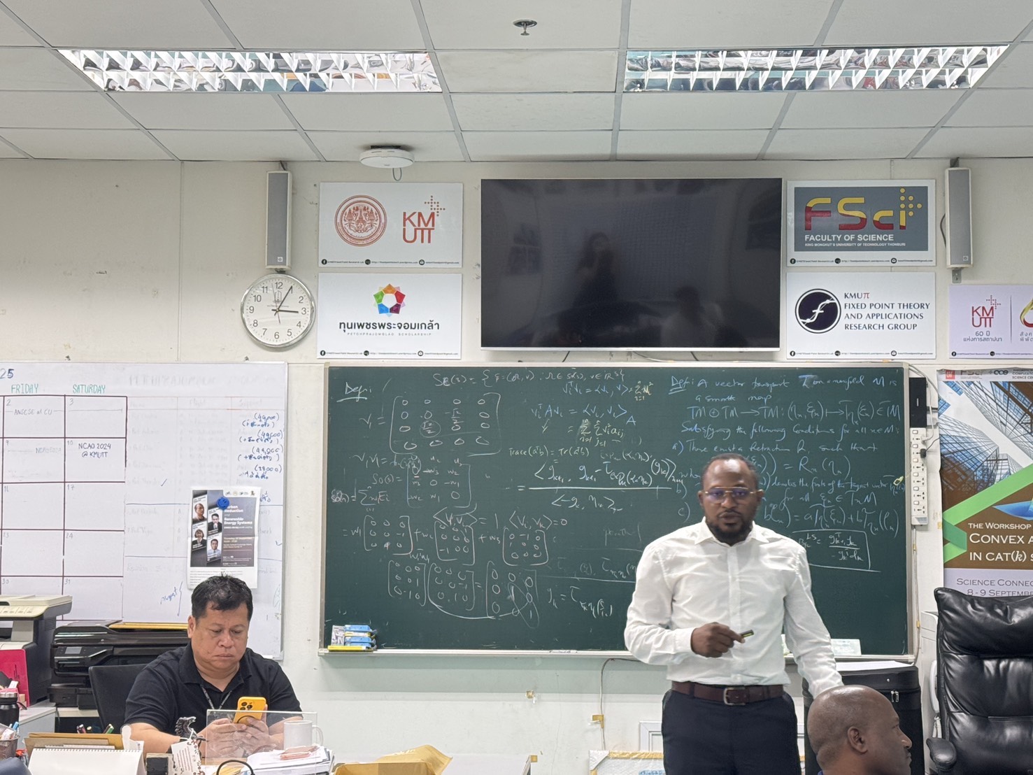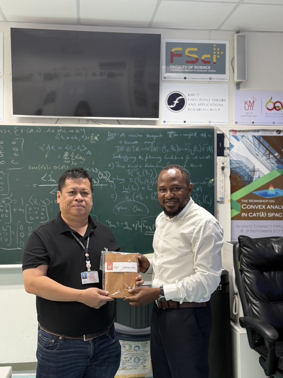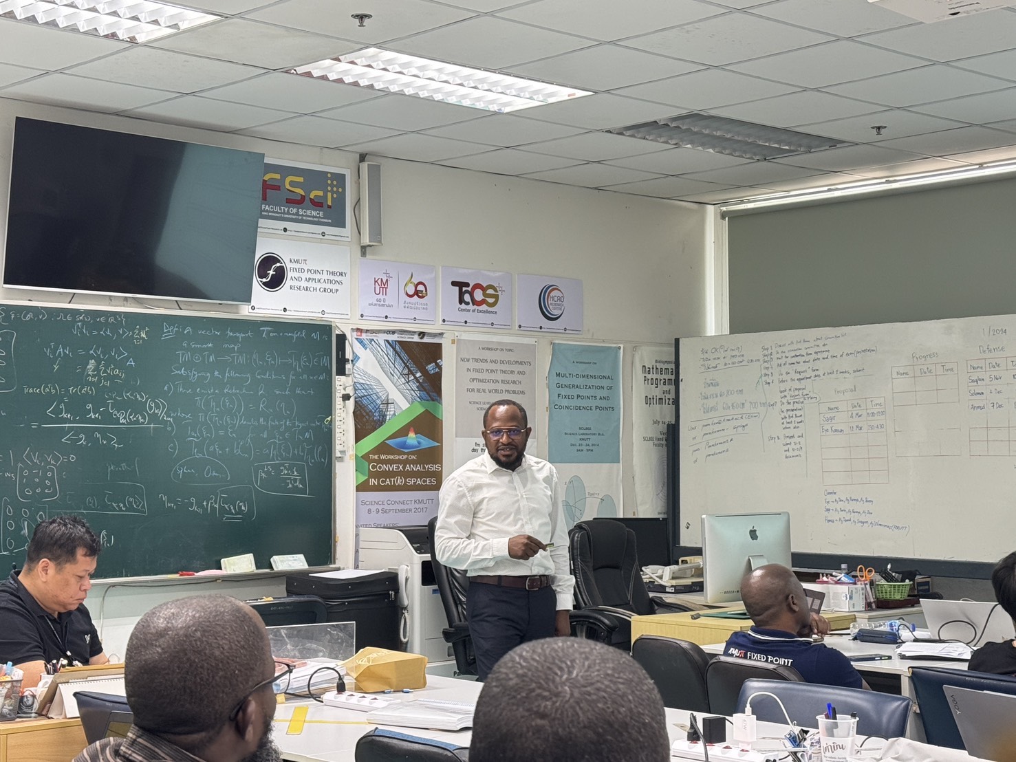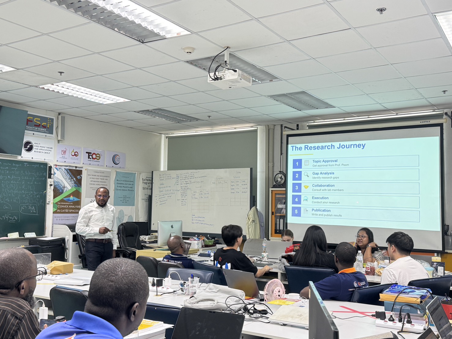 A special lecture was delivered by Dr. Jamilu Abubakar, a postdoctoral researcher from King Mongkut’s University of Technology North Bangkok (KMUTNB), on Thursday, 5 February, at 1.00 p.m. at the Fixed Point Research Laboratory (SCL 802), KMUTT. The session provided valuable insights into research practices, academic experiences, and research pathways in the postdoctoral research environment.