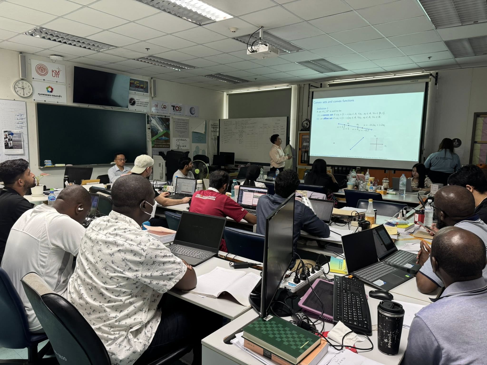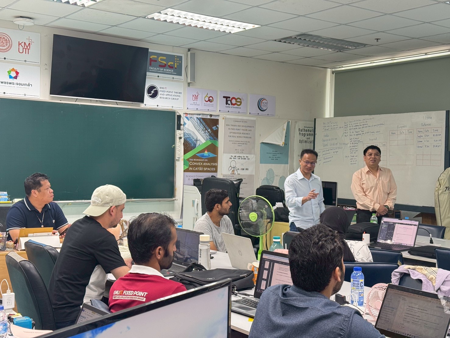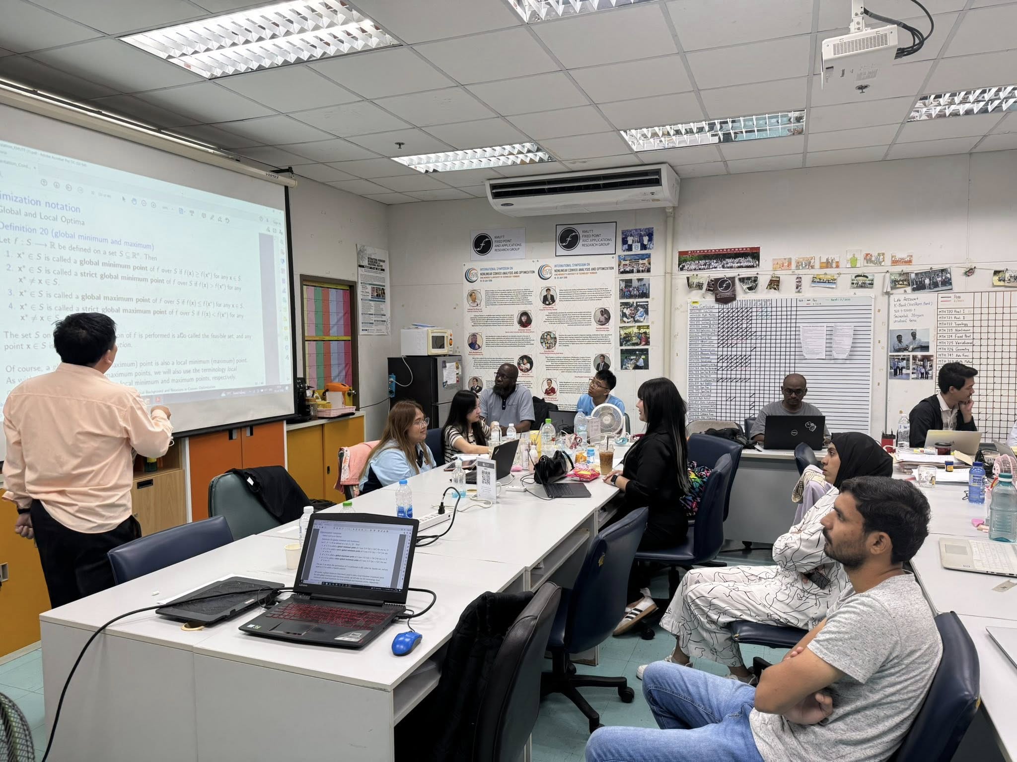 Assoc. Prof. Dr. Kasamsuk Ungchittrakool delivered an engaging lecture on “Mathematical Background and Notations in Convex Optimization”, providing participants with a strong foundation for understanding optimization problems. This was followed by Prof. Dr. Rabian Wangkeeree’s session on “Optimization Theory: The KKT Conditions in Nonlinear Optimization”, which explored crucial theoretical principles for solving nonlinear optimization tasks, bridging theory with practical applications in control and machine learning.