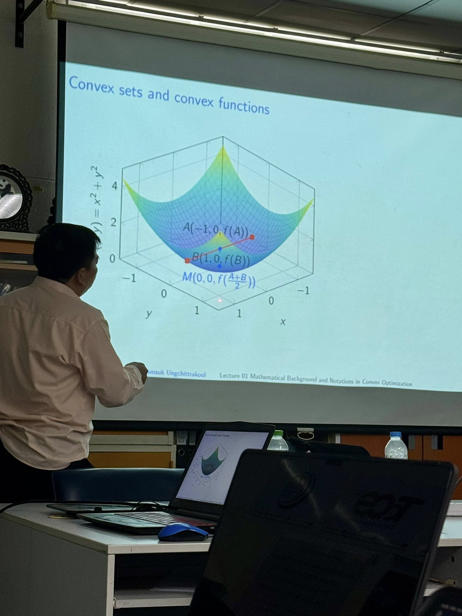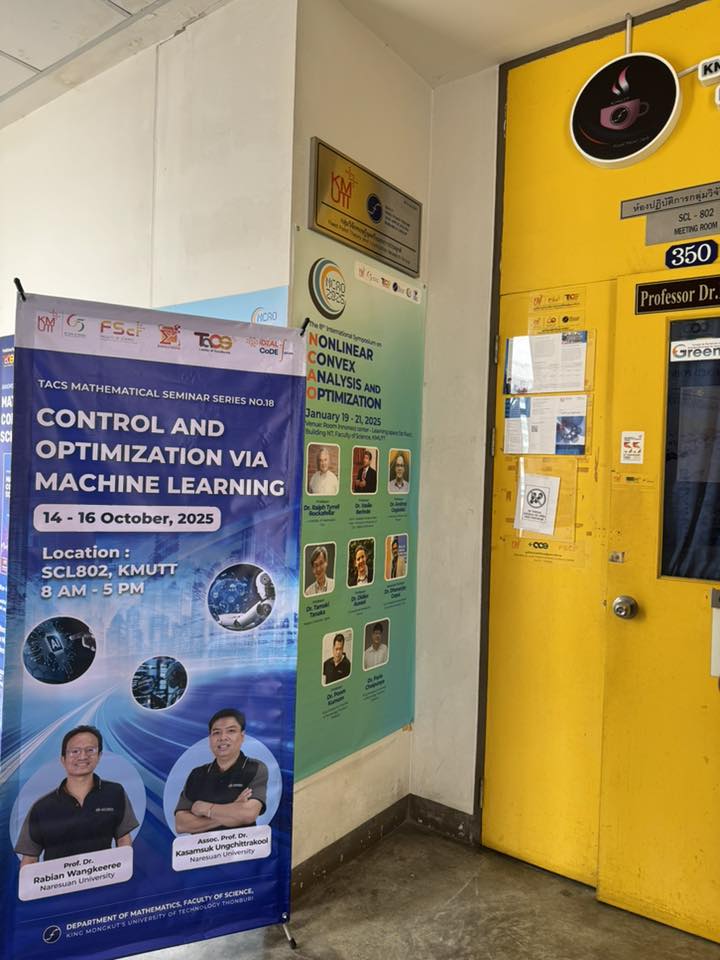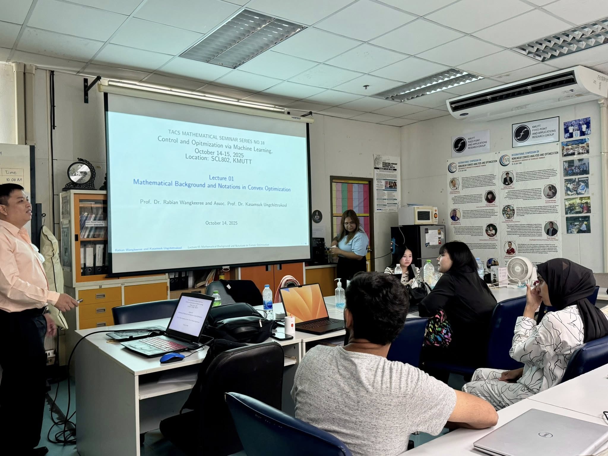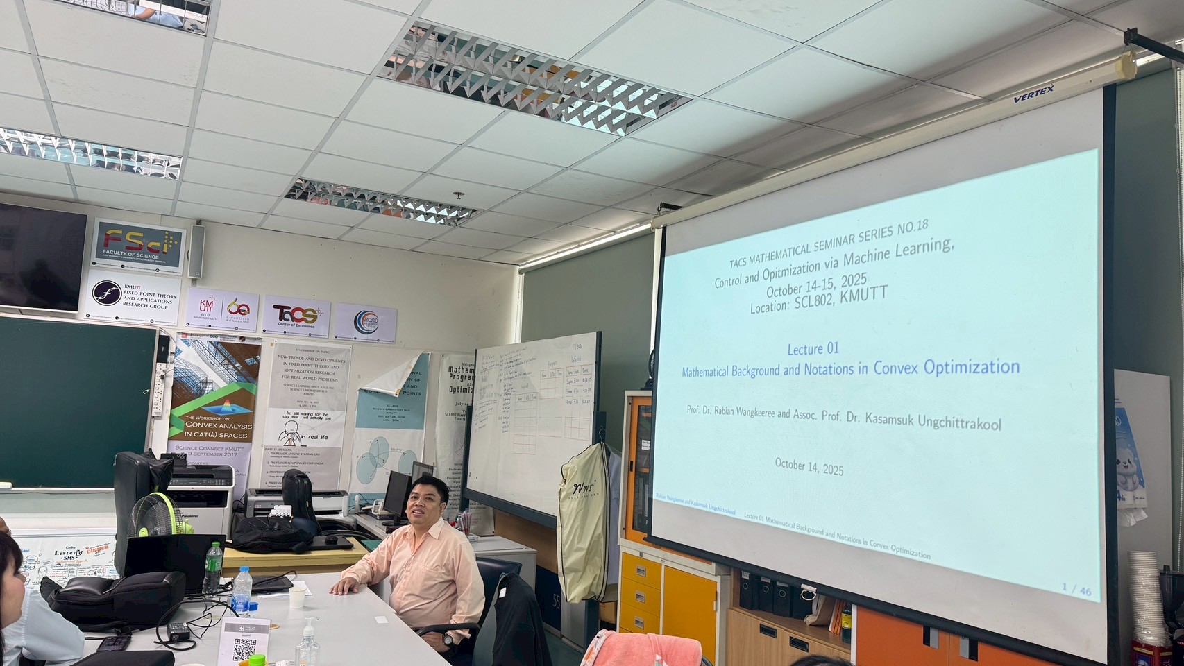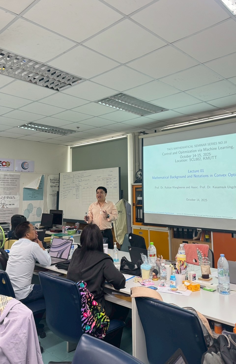 On October 14, 2025, the first day of the TaCS Mathematical Seminar Series No.18 featured insightful talks by distinguished speakers from Naresuan University, Prof. Dr. Rabian Wangkeeree, and Assoc. Prof. Dr. Kasamsuk Ungchittrakool. The seminar offered a deep dive into the fundamental mathematical concepts that underpin modern optimization and control theory.